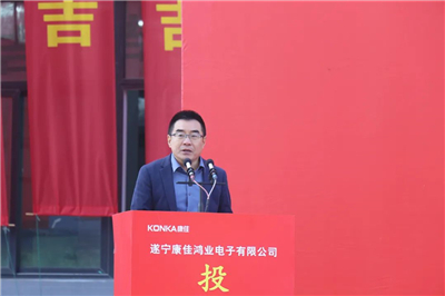 康佳集团党委、副总裁杨波,向莅临投产仪式的各位领导、来宾表示欢迎和感谢,并向大家介绍了康佳集团的发展历程,在华侨城集团领导下的“一轴两轮三驱动”新发展战略,以及打造具有全球竞争力的世界一流电子科技企业集团的发展目标。
