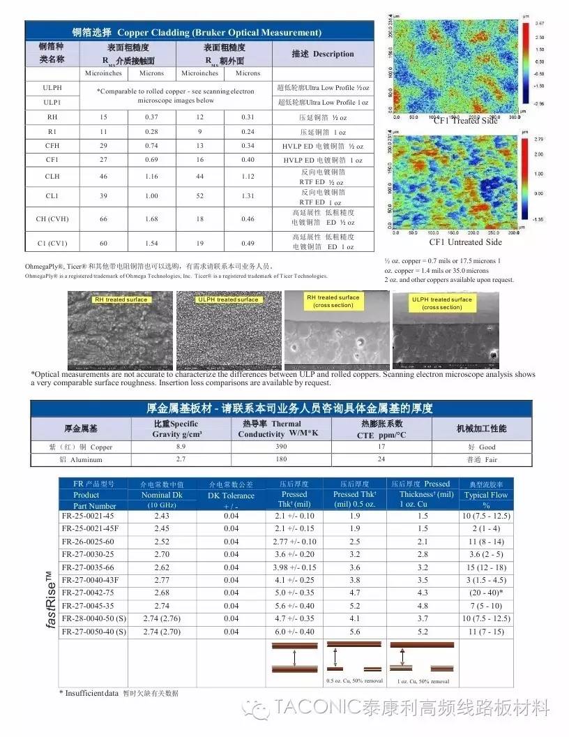 Taconic射频微波板材选型指南