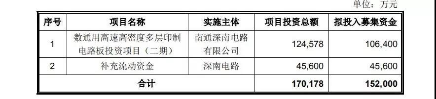 此次建议发行将筹集不高于15.2亿元人民币,扣除发行成本后,约4.56亿元人民币将用于补充深南电路流动资金,剩余资金将全部用于数通用高速高密度多层印刷电路板(二期)项目。该项目可以使深南电路抓住5G通讯市场的黄金机会,深耕高端通信、高端服务器市场,巩固深南电路在PCB领域的领先地位,进一步提升智能制造优势,以促进集团电子高科技业务的进一步发展。