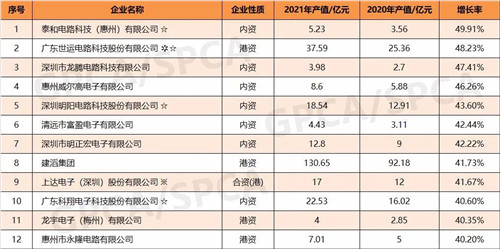备注:(1)企业界定,名单中的“内资”是指总部在广东省的电路板企业或者有生产基地在广东省的内资独资企业;“外资”是指包括中国香港地区、中国台湾地区、日本、欧美等独资,或者与境内合资的、在广东省有生产基地的电路板企业。根据全国企业信用信息公示系统查询。