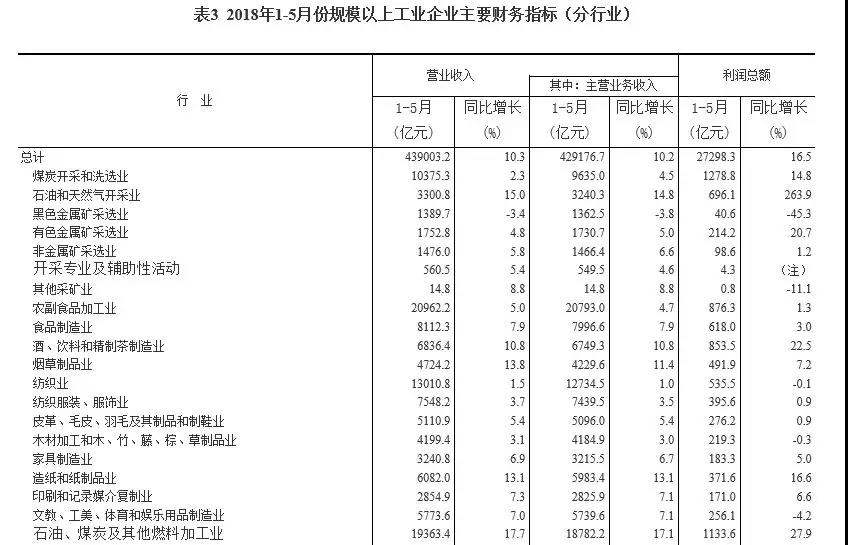 为此国家统计局工业司何平博士解读了2018年1-5月份工业企业利润数据,原文如下: