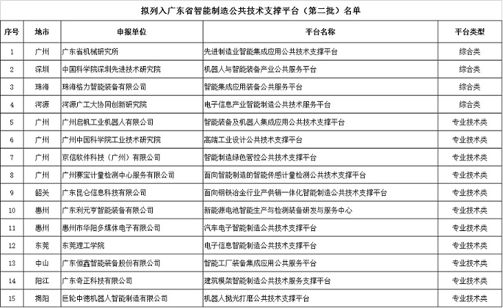 为贯彻落实《工业和信息化部 财政部关于印发智能制造发展规划(2016-2020年)的通知》和《广东省智能制造发展规划(2015-2025年)》,培育建设支撑智能制造产业发展、具有公益性与开发性的公共技术支撑平台,我委启动广东省智能制造公共技术支撑平台(第二批)遴选工作。