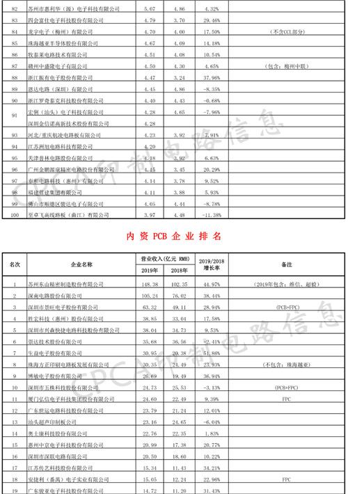 5月20日,CPCA、CITIF联合发布第十九届(2019)中国电子电路行业排行榜。