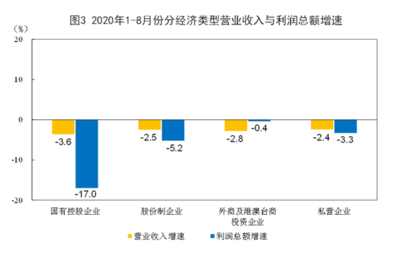 2020年1-8月份全国规模以上工业企业利润下降4.4%