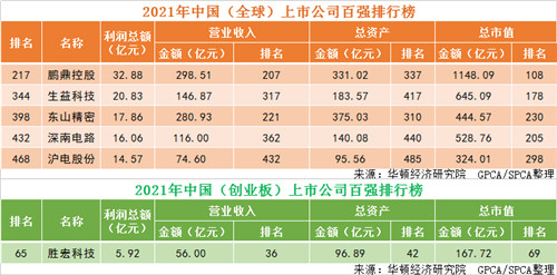 多家上市PCB企业入选2021年中国上市公司百强排行榜